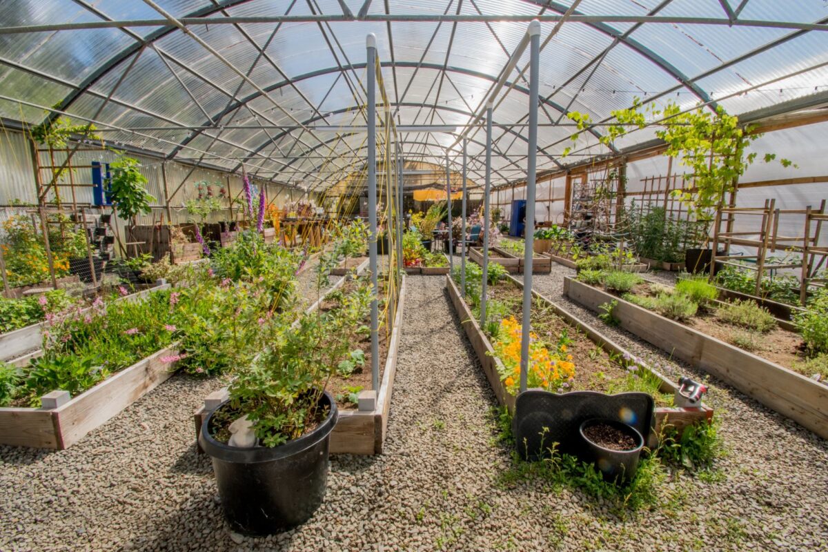 The property that is now Tiny Tranquility was originally a rundown nursery in really terrible condition. Josh, the owner, purchased the dilapidated land and fixed it up. During the renovation, he repurposed a few of the original buildings into shared community spaces for the residents of his future Tiny House community. For example, the park has a beautiful indoor garden for growing flowers, fruit, and vegetables. Other community spaces include: an exercise room, mail room, yoga area, tv room, laundry room, private storage area for residents, game room, library, outdoor barbecue, large shared kitchen with an ocean view, and a few rentable spaces for small businesses.